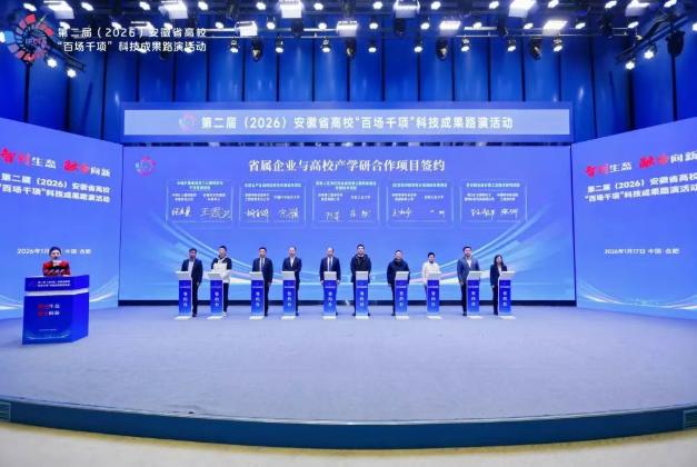 1月17日,第二届安徽省高校“百场千项”科技成果路演在安徽创新馆举行。淮海实业集团受邀参会,并与合肥工业大学现场签约“3D视觉识别在筛分系统的应用”项目,标志着集团在智能装备升级方面迈出关键一步。本次活动由安徽省教育厅、国资委、工信厅等多部门共同推动,旨在促进高校科技成果与企业需求精准对接。集团党委委员、副总经理王雪峰带队参加。现场活动内容丰富,涵盖成果落地颁证、产学研签约、转化联盟揭牌、成果发布与展示等多个环节。...