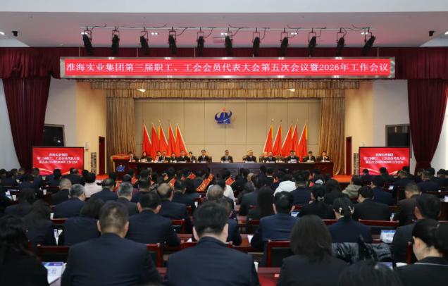 1月8日,淮海实业集团总部,第三届职工、工会会员代表大会第五次会议暨2026年工作会议如期举行。全体代表齐聚一堂,回顾极具挑战的2025年,共同谋划2026年发展蓝图。