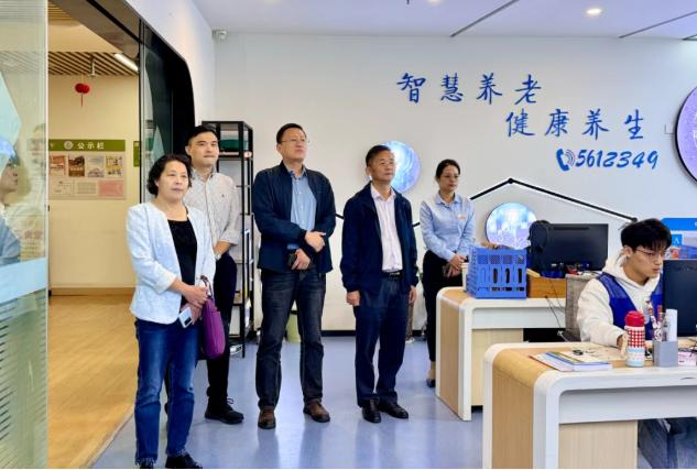 陈鹏一行深入淮海康养中心、爱晖颐养院,查看长者活动室、康复理疗区、社区食堂及智慧养老服务平台等重点区域,了解智慧养老平台功能整合与新区域环境设计有关情况,交流医养结合服务体系建设意见建议。