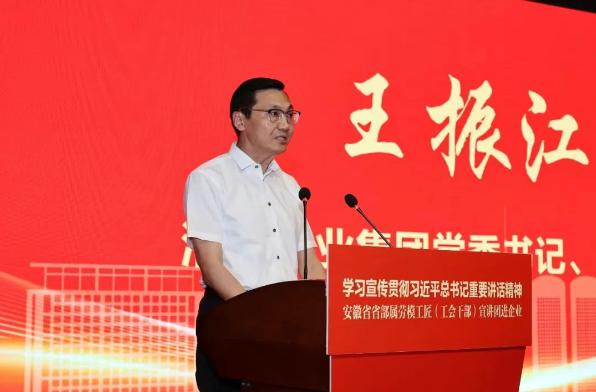 王振江在致辞中简要介绍集团改革发展历程,号召广大干部职工大力唱响劳动最光荣、劳动最崇高、劳动最伟大、劳动最美丽的时代主旋律,共同为全面建设美好安徽,奋力谱写中国式现代化安徽篇章作出更大贡献。