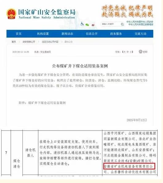目前,该设备已入选国家推荐名录,并获得多项专利,展现了安徽矿机在矿山智能装备领域的创新实力。未来,安徽矿机将继续深耕智能化矿山装备,用技术创新守护矿工安全,推动行业高质量发展。