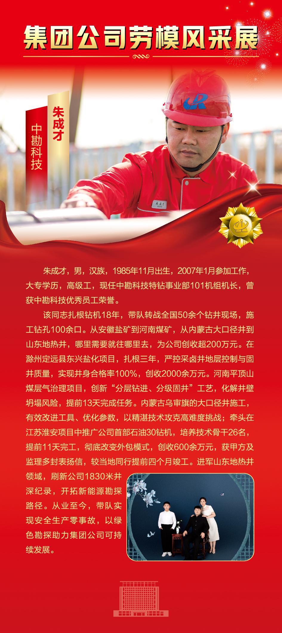 【榜样引领】中勘科技 朱成才:十八春秋钻岩穿层,百口井眼铸就担当