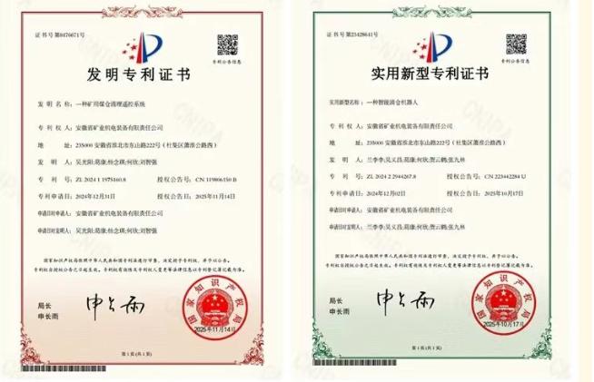 目前,该设备已入选国家推荐名录,并获得多项专利,展现了安徽矿机在矿山智能装备领域的创新实力。未来,安徽矿机将继续深耕智能化矿山装备,用技术创新守护矿工安全,推动行业高质量发展。