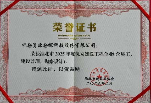 实力再获认可!中勘科技荣膺“淮北市优秀建设工程企业”